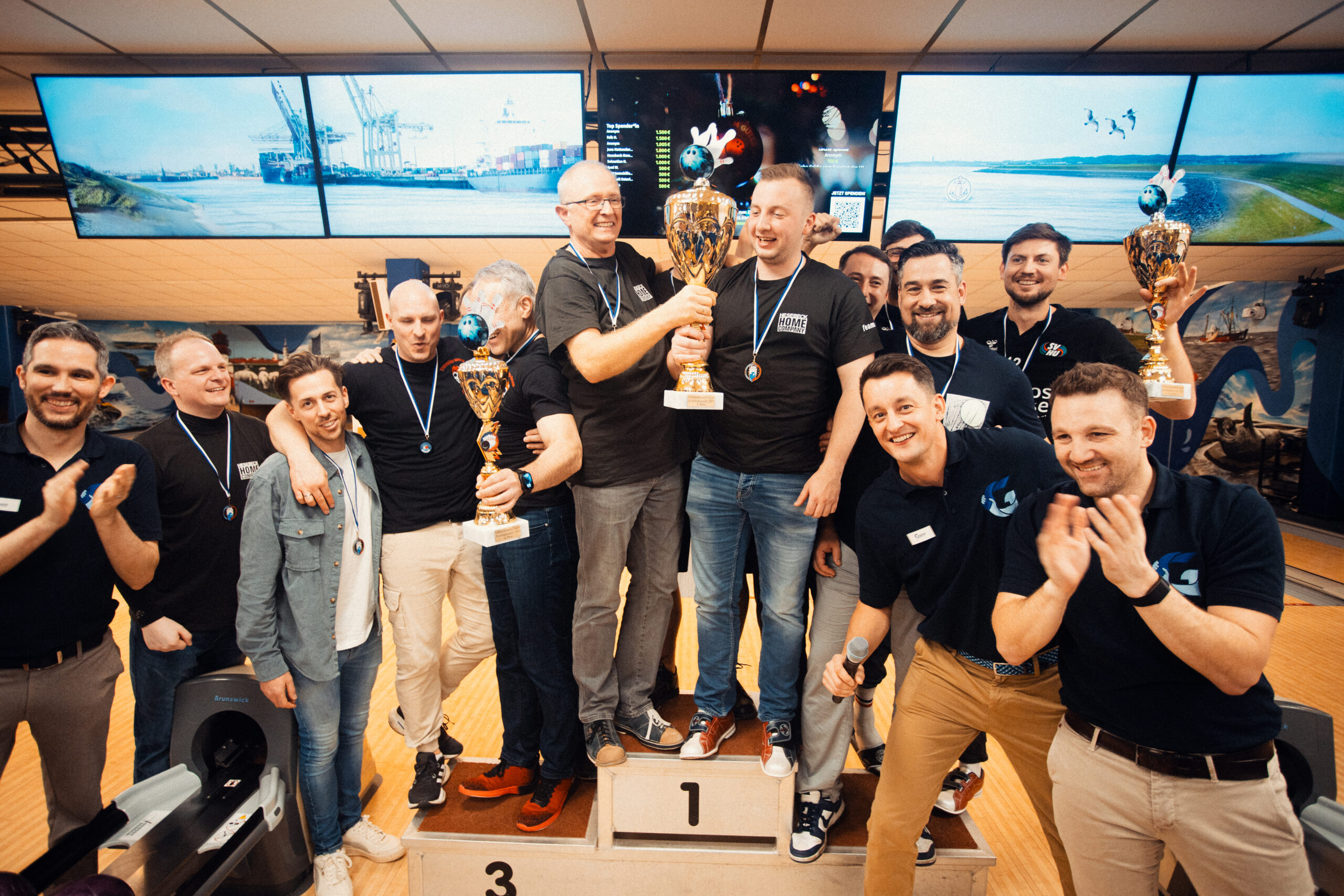 Endlich durften wieder Veranstaltungen mit Publikum stattfinden. Das musste genutzt werden, denn wir wollten nicht nur den Zuschauern im Stream ein einzigartiges Erlebnis bieten, sondern auch den UnterstützerInnen vor Ort. Mit Nordic Bowling kam ein weiterer Partner an Bord. Joey stellte uns die Bowlingbahn in der Weihnachtsfeierzeit kostenfrei zur Verfügung und GemeinsamGutes 3 Charity Bowling war geboren. Über 20 Teams spielten und spendeten. Die Gewinner am Ende waren nicht nur das Bowling Team der Steuerberatung Axel Walch, sondern vor allem die drei sozialen Organisationen.